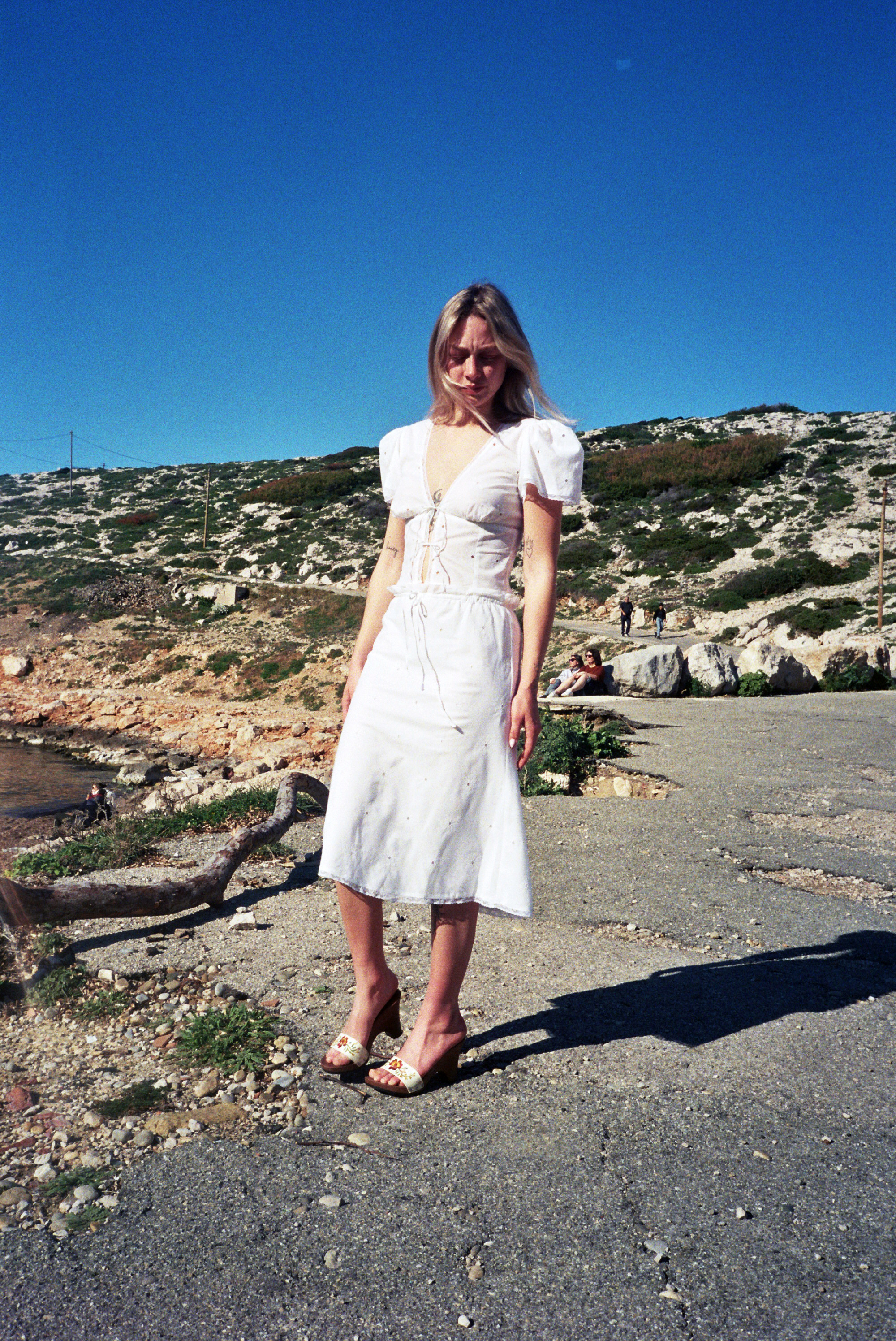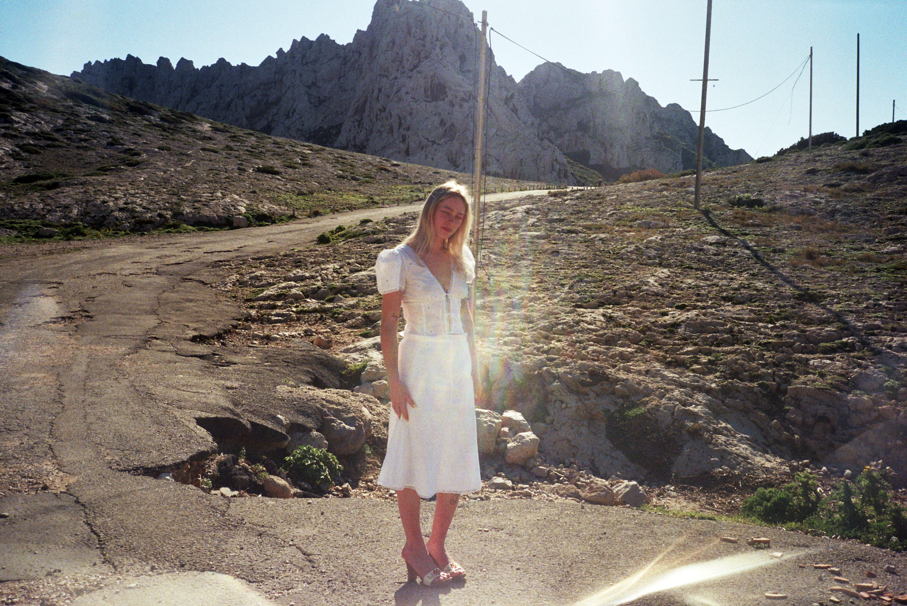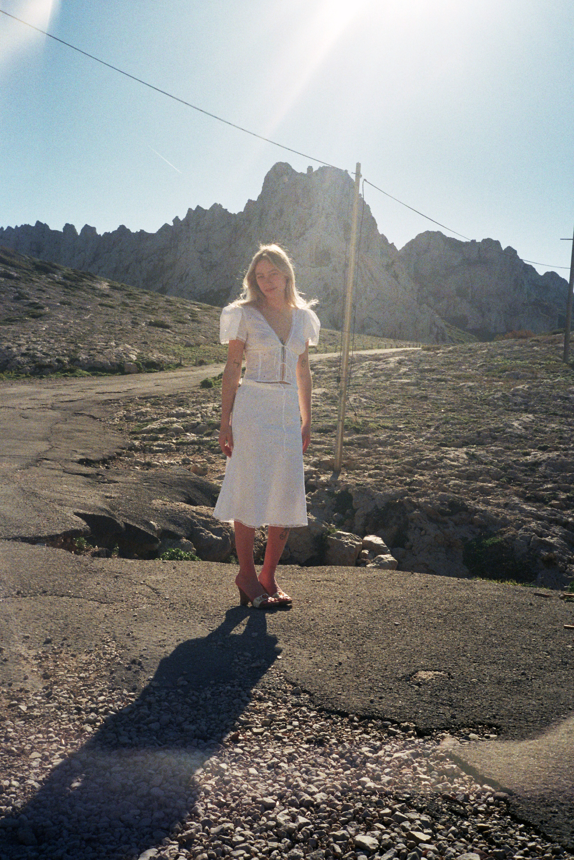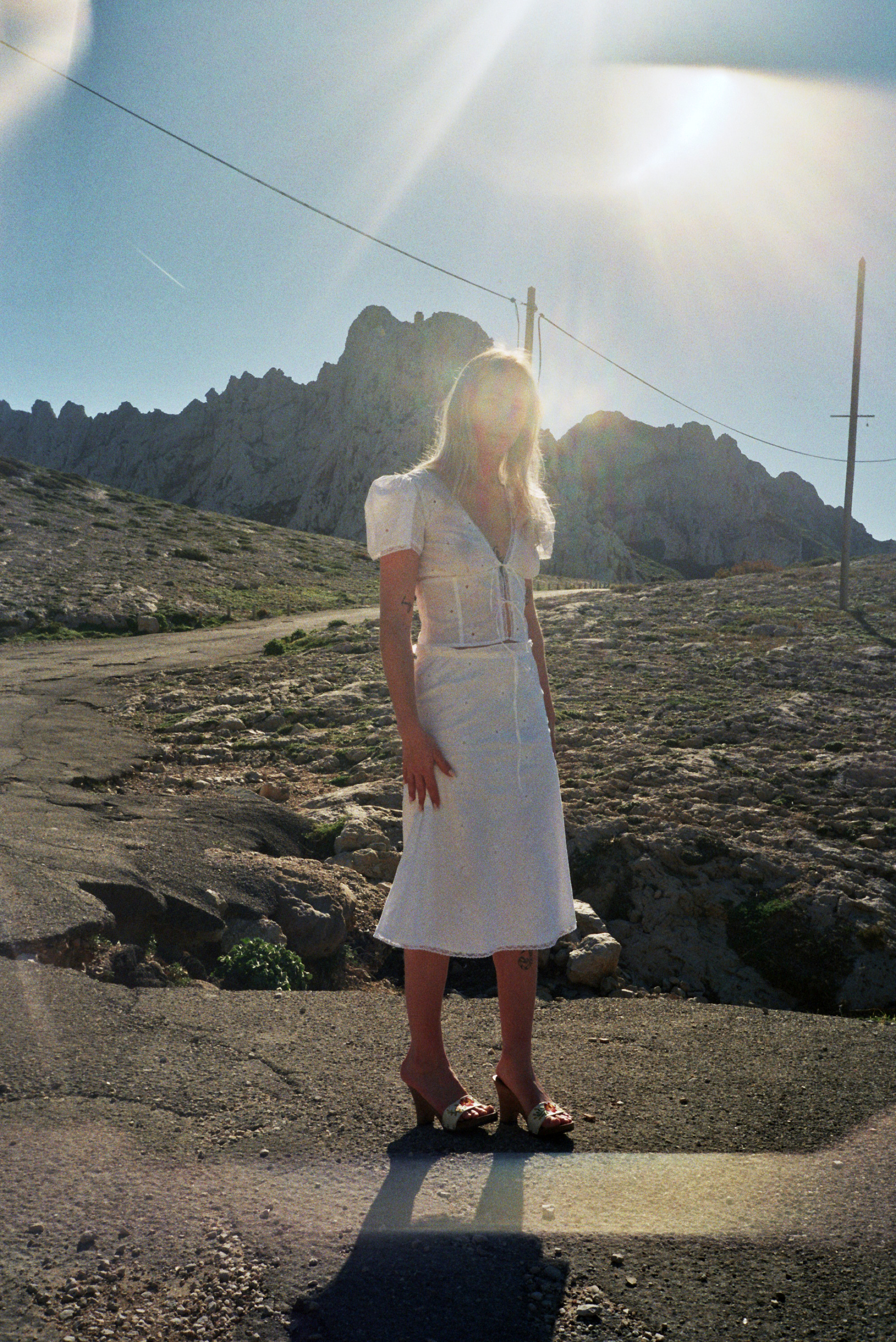 Jupe mi-longue évasée en coton brodée petite fleurs, taille haute, taille élastiquée. 100% coton.