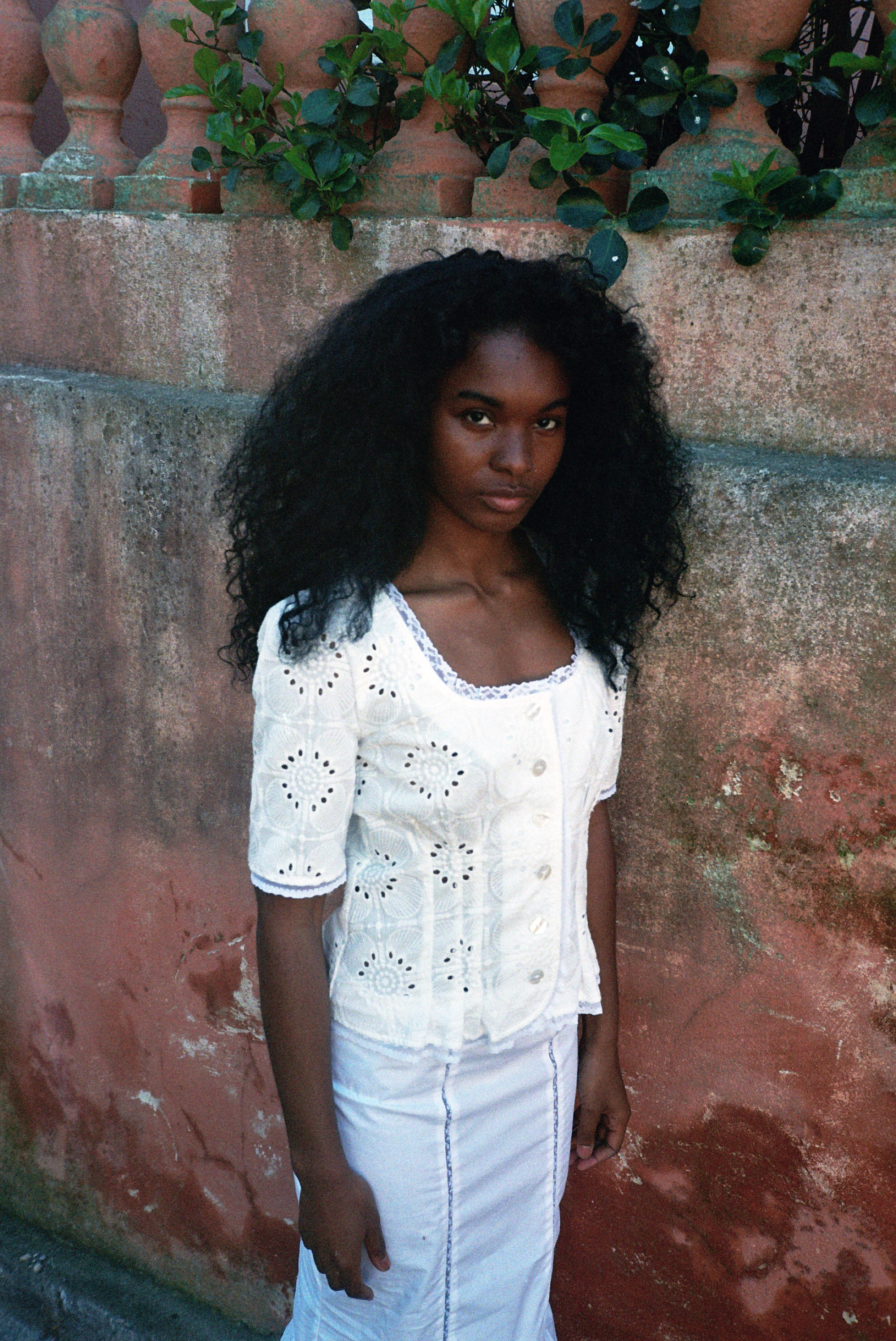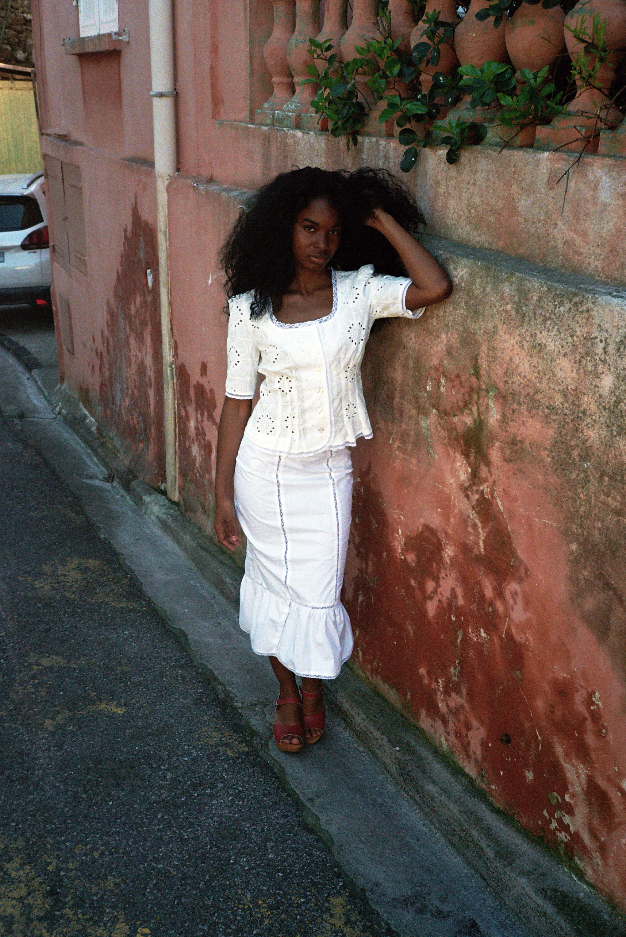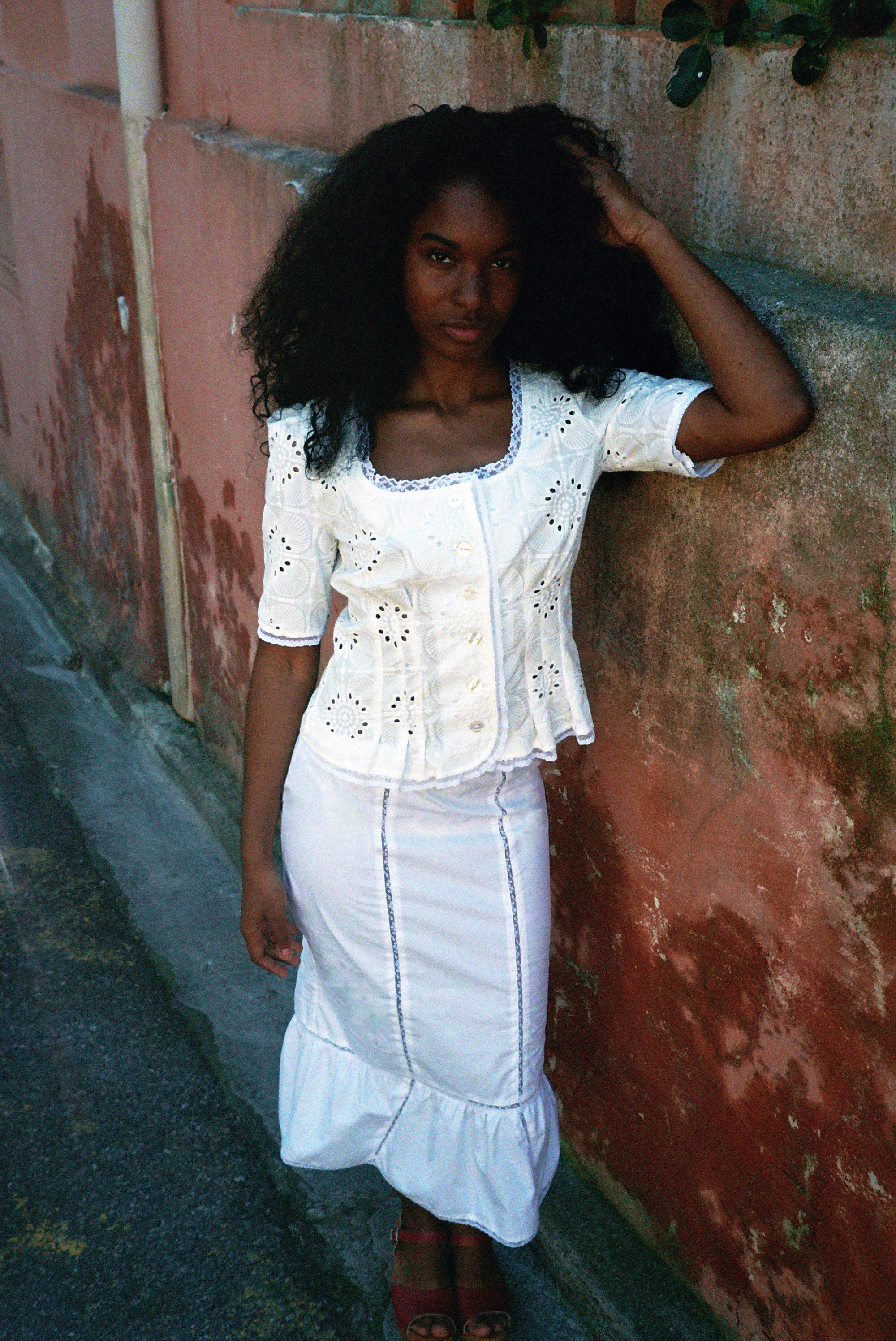 Jupe sirène en coton blanc et dentelle de Calais fleurie.