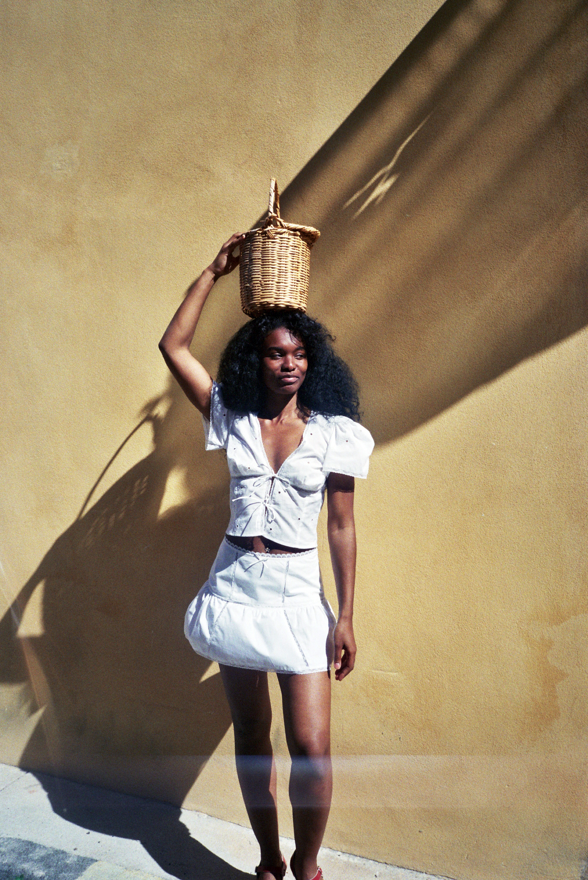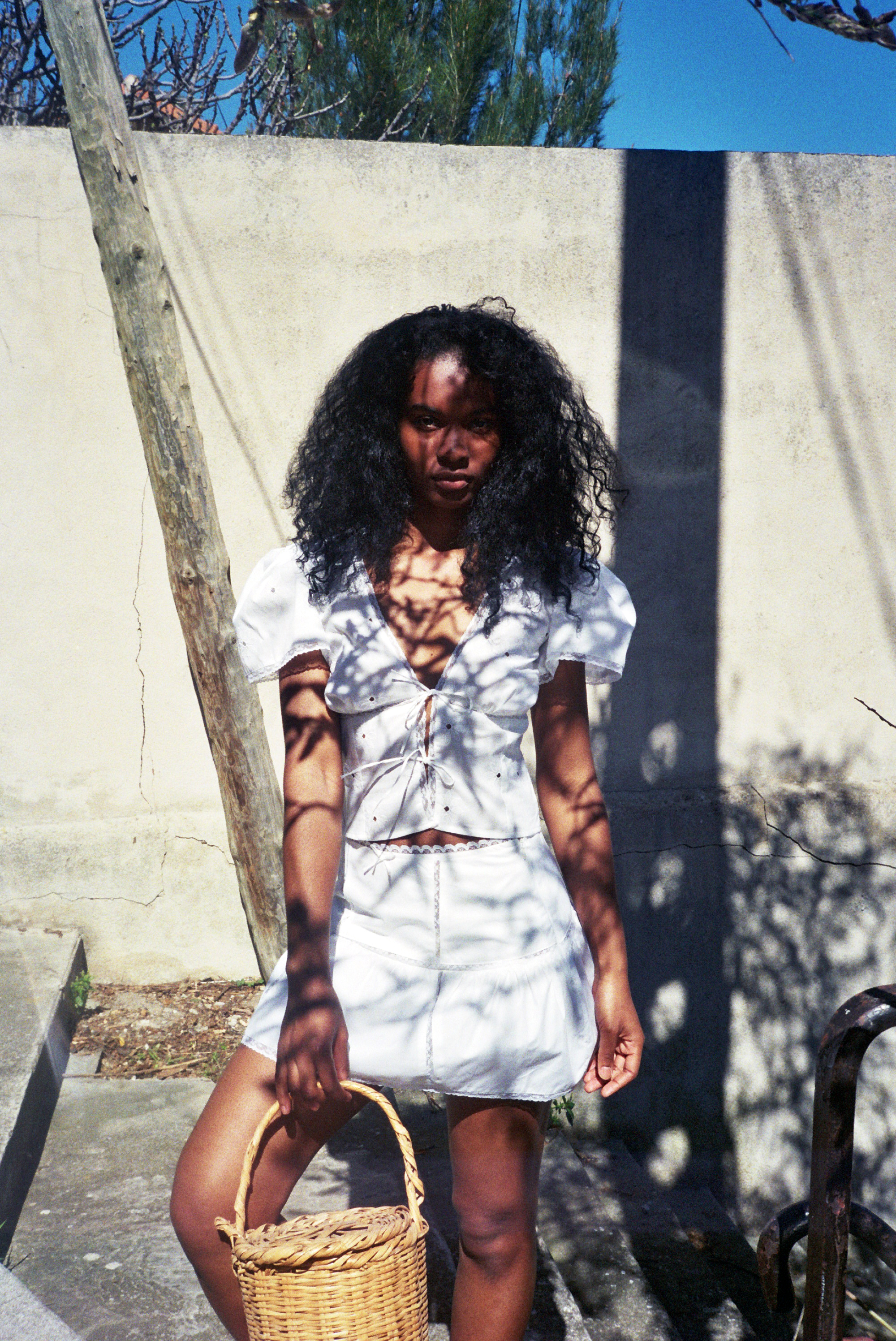 La modèle mesure 1m71 et porte une taille S/36.