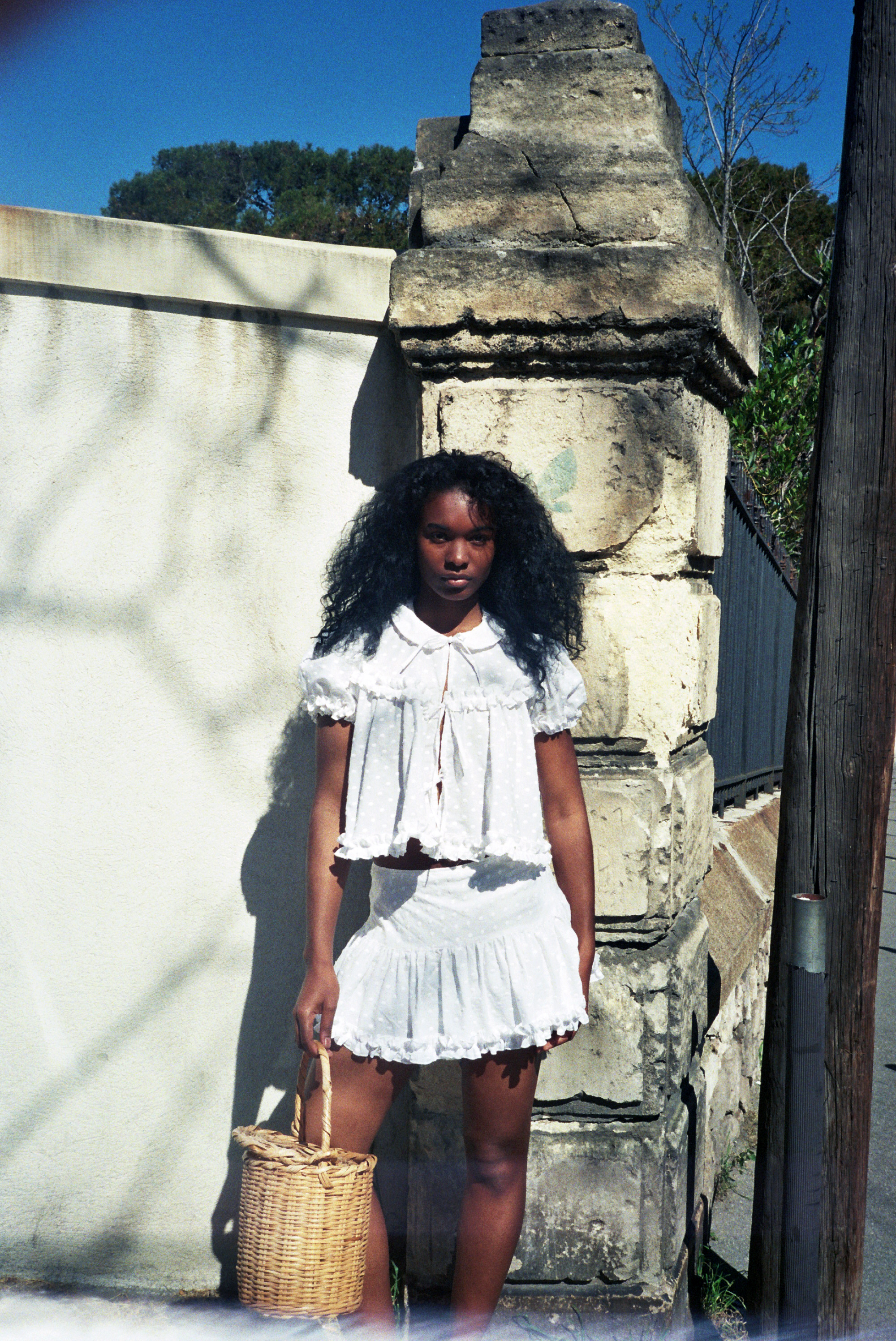 Jupe plissée froufrous en coton plumetis blanc, taille mi-haute, fermeture éclair invisible sur le côté. 100% coton. Coton fin délicat, doux et agréable à porter. La modèle mesure 1m71 et porte une taille S/36.