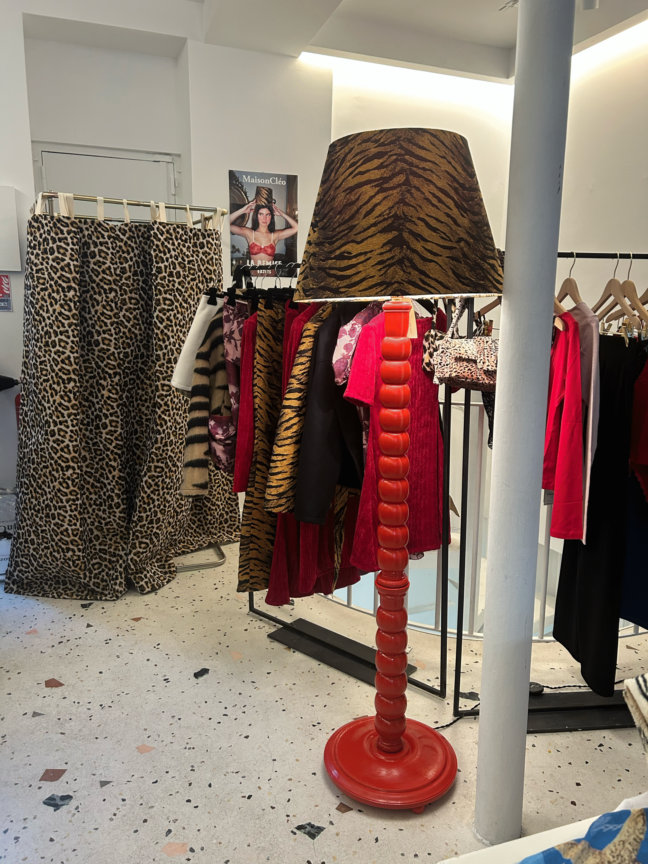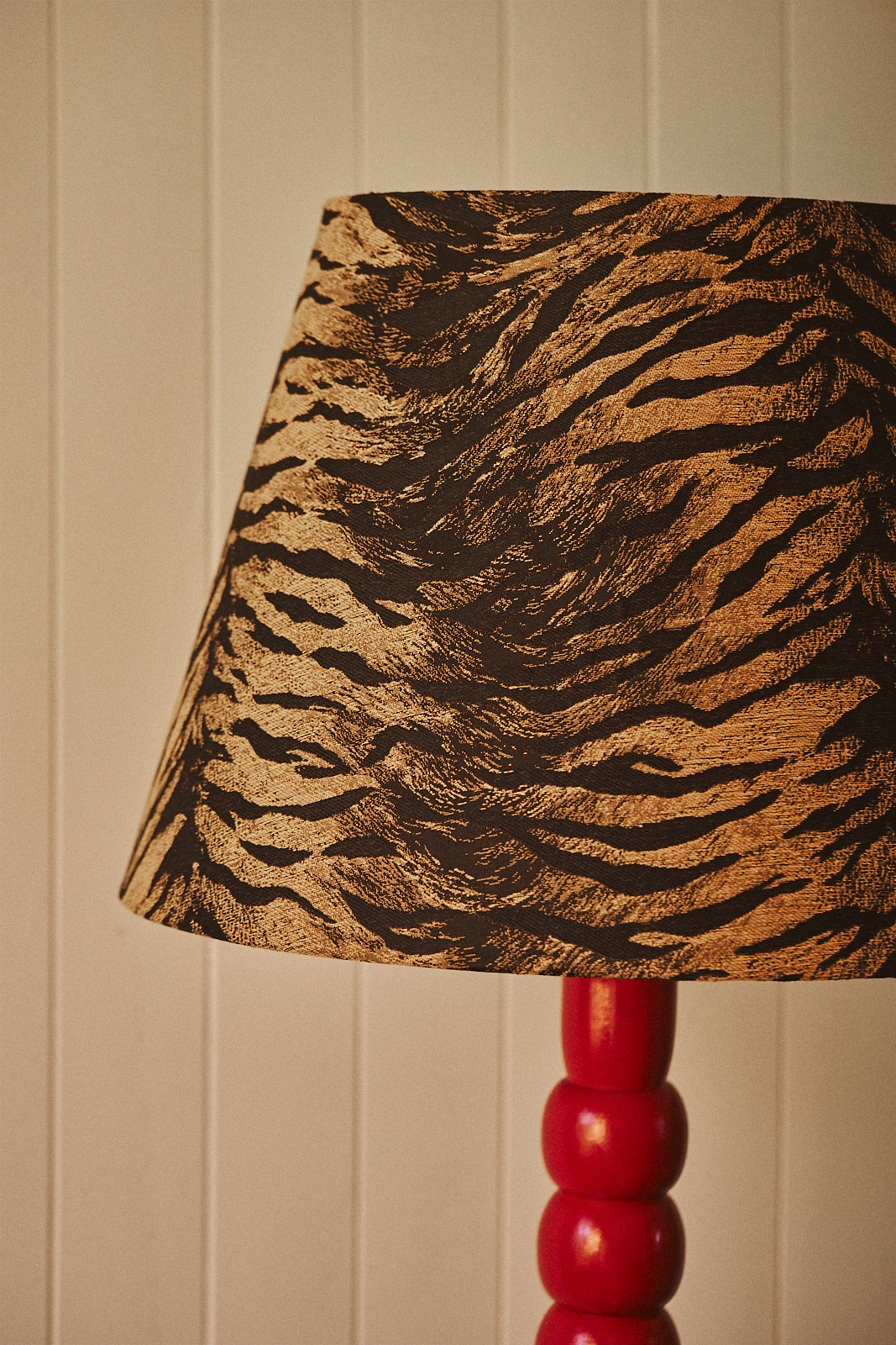 Nous vous présentons l’une de nos collaborations favorites avec Alexandre de La Remise Objets! Alexandre fabrique des abats-jours à la main en France et utilise cette fois-ci le tissu de notre ensemble tigré de notre dernière collection pour réaliser la plus désirable des lampes!