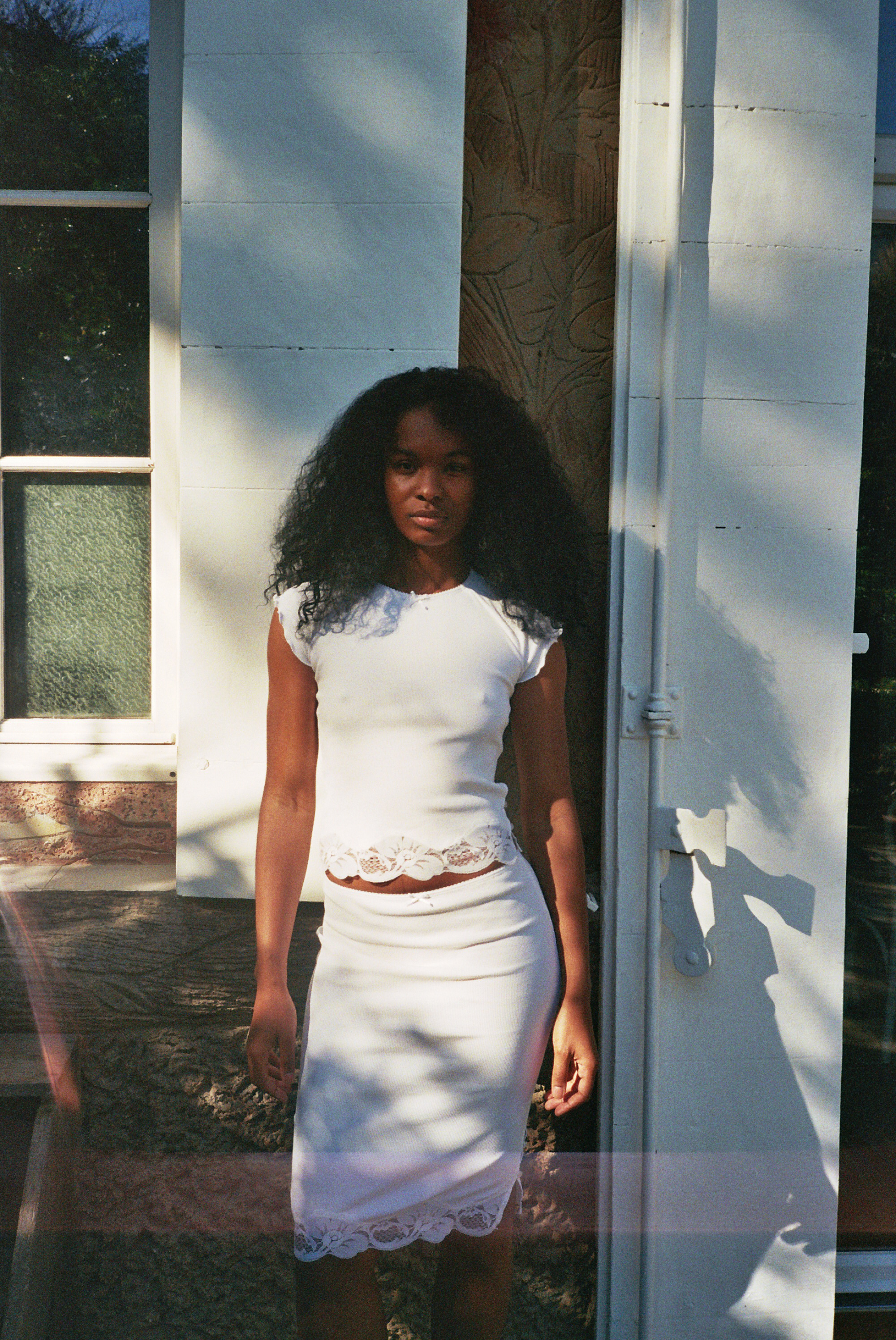Jupe FALBALA en jersey de coton blanc avec dentelle de Calais