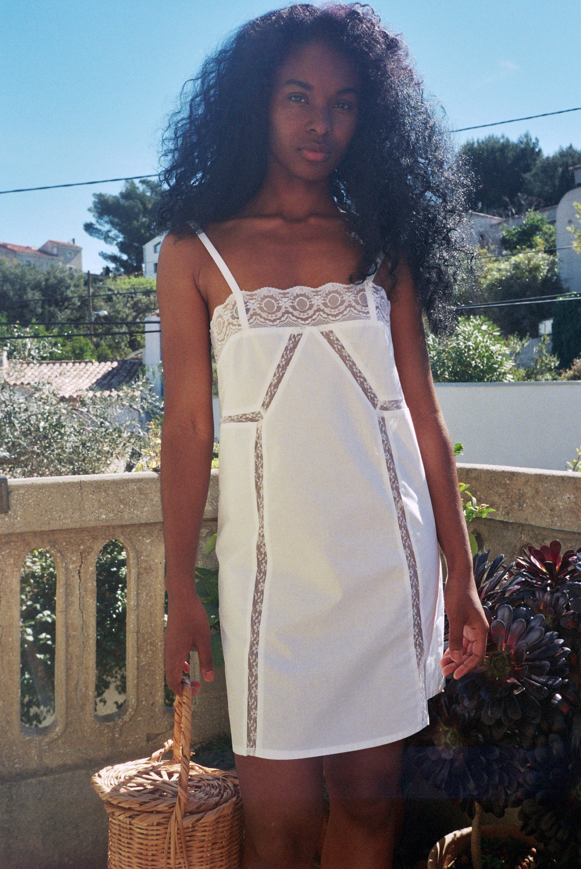 White cotton Calais floral lace dress. Our favorite from our new drop!